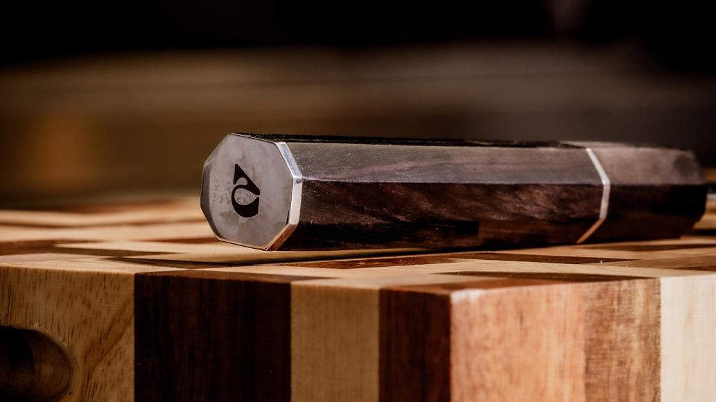 67 layers of Damascus steel with a Japanese VG-10 steel core, paired with a contoured ebony wood handle.