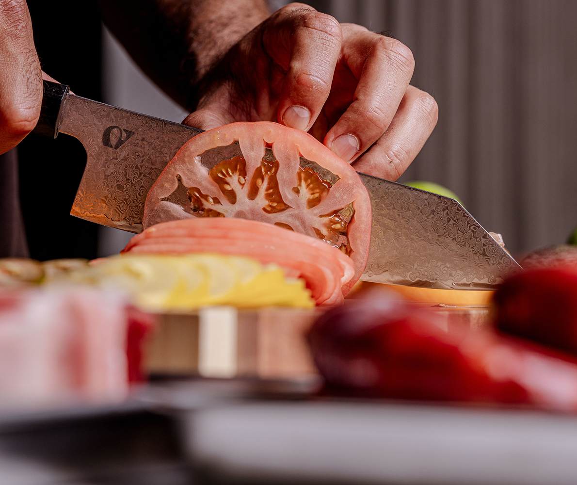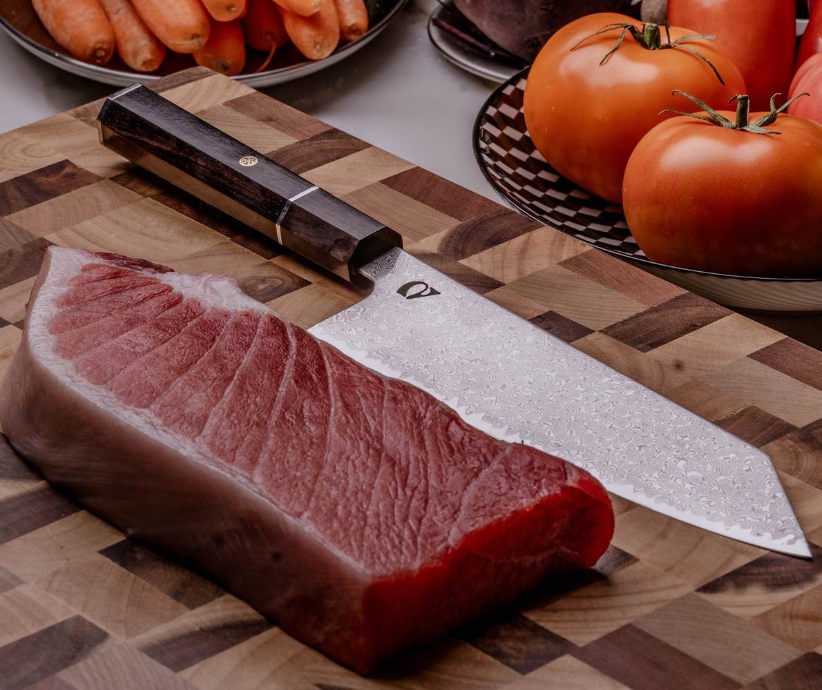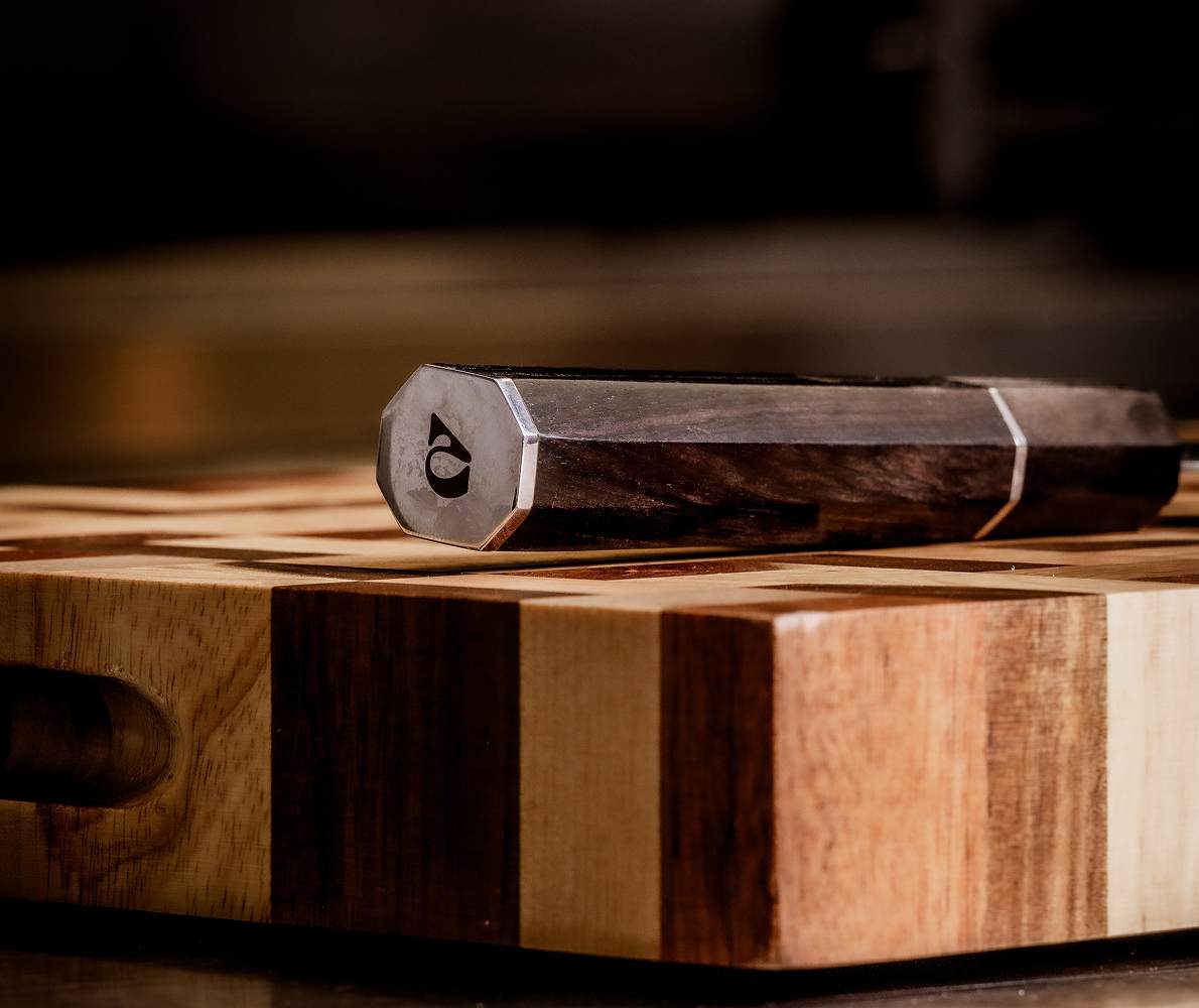 Crafted from 67 layers of Damascus steel with a Japanese VG-10 core, The Chef’s Knife delivers precision, durability and incredible cutting performance. The ebony wa-style handle provides a secure, comfortable grip for your everyday cooking, making prep feel effortless.