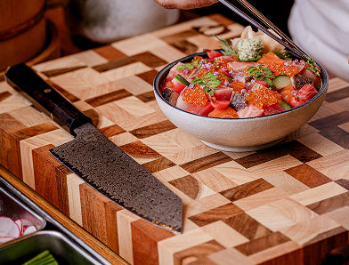 The ultimate set for serious home cooks. Get our signature end-grain chopping board and VG-10 Japanese steel chef’s knife, plus a 2-pack of non-slip mats together for 25% off.